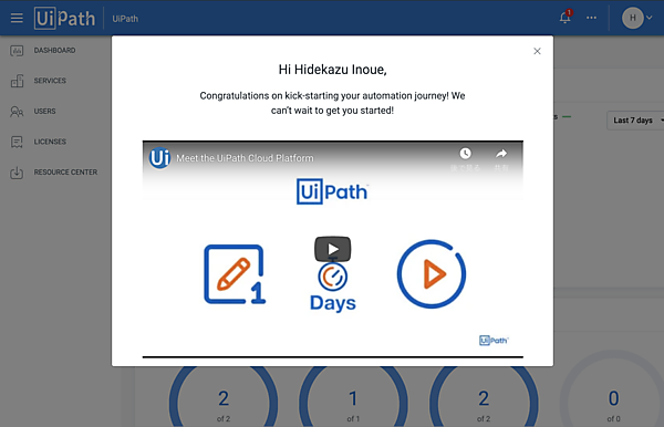 なお、別途事前に利用中のUiPath Studioを開発端末としてOrchestratorへ接続しておく必要があります。方法は次のサイトを参考にしてください。