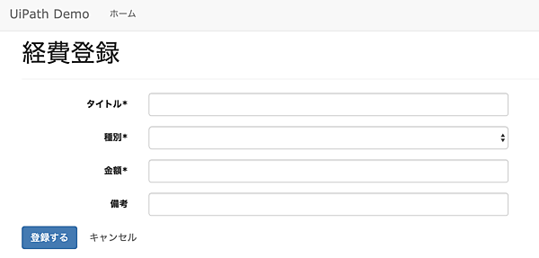今回は、RPAのデモ用に作成された経費登録用のWebアプリケーションに大量のデータを入力するというシナリオで、Orchestratorのキュー機能を利用し、フレームワークを用いてロボットでの登録作業の自動化を目指します。