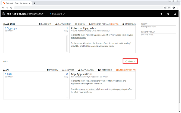 まず、管理ポータルのダッシュボードから[NEW API]を選択します(図2)。