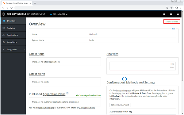これでサービス(3scaleでは“API”と“サービス”は同義)の定義ができあがりました(図4)。以降、具体的な設定をしていきます。
