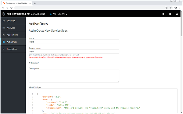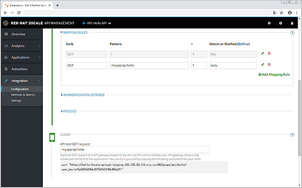 それでは、早速APIバックエンドに存在するHello APIを3scaleで公開してみましょう。以下の3つを設定します。