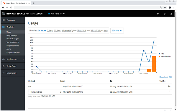 $ curl "https://hello-3scale-apicast-staging.192.168.99.113.nip.io:443/myapp/api/hello?user_key=cf6e6569d04dc087541b2f49b486a2f1"