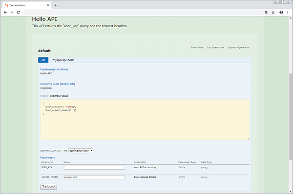 ここでは、トップ画面およびドキュメンテーションをHello API仕様に変更してみましょう。