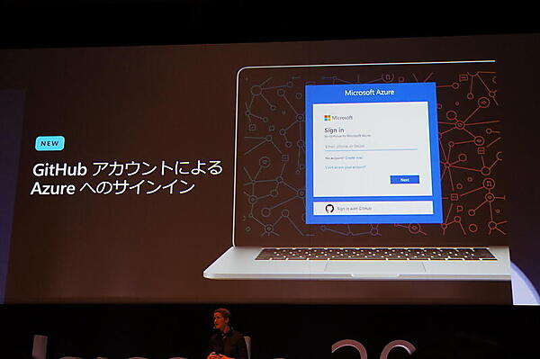 また、GItHubについて、Python開発コミュニティやShell社が利用していることを紹介。ShellはAzure DevOpsを使っている最大規模の会社でもあるという。そして、企業向けのGitHub+Azureの新機能として、GitHubとAzure Active Directoryの同期サポートやGitHubアカウントによるAzureへのサインイン、Visual Studio+GItHub Enterprise統合サブスクリプションを紹介した。