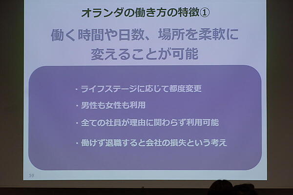 一方で、オランダには「女性が子育て後にパートタイムからフルタイムに戻る割合は少ない」という課題がある。だが、自分にとっていまベストな働き方がパートタイムであるならば、「好んで」選択できる権利があり、何も問題はないそうだ。