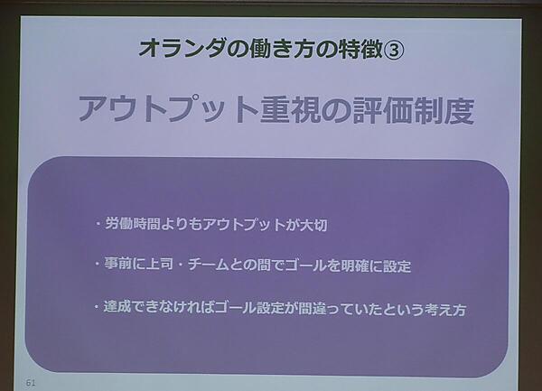 労働時間よりアウトプットが重視される。アウトプットの管理も上司と部下で綿密に話し合って進めていく。目標を明確に設定するため、目標を達成できなければ「そもそものゴール設定が間違っていた」という考え方なのだとか。