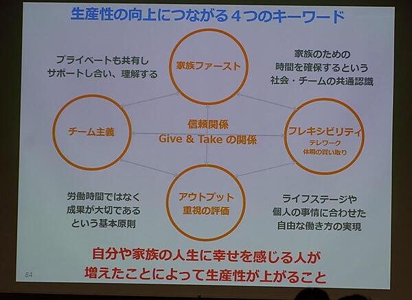 自分で自分の働き方を選択できることが、すべての生産性に繋がっていくとしたら、日本の規則は細かすぎるのではないか。まずは上司と部下の信頼関係のあり方を見直すことから取り組んでいけるのではないかと、秋山さんは講演を締めくくった。