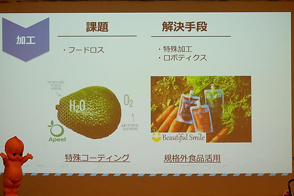 現在では、食のサプライチェーンの問題解決に多くのテクノロジーが活用されている。上村さんから、その事例の紹介があった。これまで食べられていなかった領域の食材が増えている背景には、「来る世界的な食糧不足を懸念していることが垣間見える」と上村さんは分析する。以下、箇条書きにて紹介する。