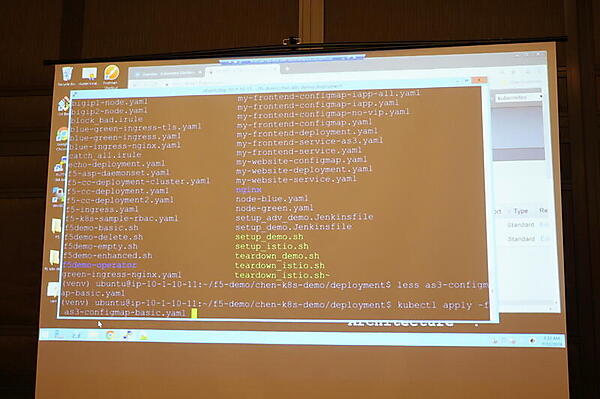 そこからさらに進むと、BIG-IP VEの設定もKubernetes環境から行いたいということになる。これについて伊藤氏は、CI/CDツールを使ってkubectlから設定を実行する例をデモしてみせた。このデモは、JSON形式の設定をREST APIによりBIG-IPに与えるCI/CDパイプラインをkubectlから実行するものだ。伊藤氏は、BIG-IPなら外部のクライアントのIPアドレスをサービスに伝えることができることも付け加えた。