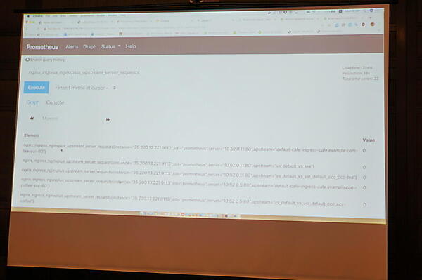 ここで鈴木氏はデモを実演。YAMLのIngress ControllerのオプションでPrometheus連携とカスタムリソースを有効にし、kubectl scaleでPodを増やすところやPrometheusでの表示などを見せた。