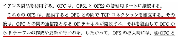 サービス基盤をSDN方式で構築する場合の構成案に関する説明と、SDNで利用する技術(OpenFlow)や構成要素(OFC/OFS)の説明 - 3段落目(18ページ[二つの方式の検討])