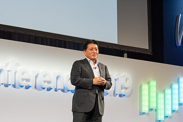 続いて登壇した西脇氏は平井氏の講演内容を受けて、「国民一人ひとりにとって圧倒的な使いやすさ、心地良さを目指しているのがソサエティー5.0です。そうなれば、私たちの働き方も当然心地良くならなければなりません」と切り出し、ワークスタイル イノベーションとそれを実現するOffice 365の具体的な機能のデモを披露した。