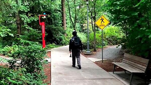 「DreamWalker」のGPSは、利用者の(現実世界での)目的地へのルートを計算し、その道のりに合致するルートをVR内の仮想マップ内で検索します。VRヘッドセットのトラッキングを使って、周囲の障害を確認し、利用者が歩行中、障害物などと接触しないように監視します。