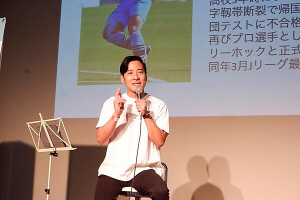 新しい働き方を模索する子どもたちには「10回の素振りより1回のバッターボックスだぞ。1回クラウドファンディングでもやってみたら」と勧めていたが、これまで自分で実践したことはなかったという。そんな中、ある教え子に「1,500円の本を買うためにクラウドファンディングしたら300円しか集まらなかった」と言われた。その瞬間、実際にバッターボックスに立った彼を目の前に、膝から転げ落ちる想いだったという。「これまでの自分の後悔を丸ごと取り返すために、Jリーガーになる」と、その日のうちに仕事を辞めることを決意。責任ある教師の仕事ではあったが、「自分の人生に嘘をついて生きる方が嫌。子どもたちにこんな道もあると知らせたい」とJリーガーへチャレンジする道を選んだ。