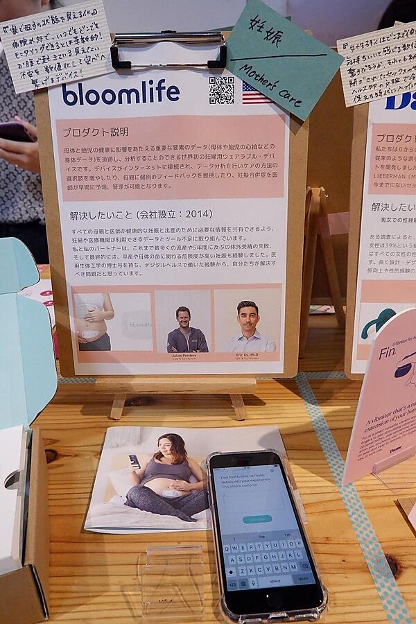 開発者のEric Dyは、パートナーと数年間不妊治療をする中で早産や流産を経験し、妊娠後も不安だらけの生活を送っていた。Bloomlofeは母親の腹部にパッドを貼るだけで、妊娠後出産まで母親が子どもの心音等を計測できる製品。将来的にはMITと協力しビックデータを集め、出産予定日や早産流産の可能性、帝王切開が必要の有無なども分かるよう開発が進められている。