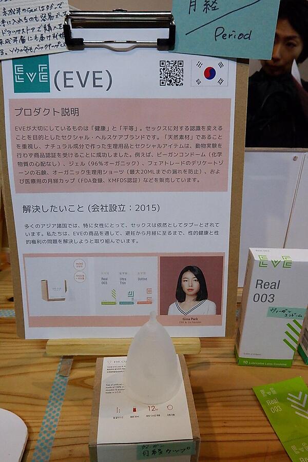 韓国では文化的な面からも若者がコンドームを手にできる機会が少ないそう。開発者のGina Parkは「韓国の性文化に革命を起こしたい」と、若者でも手に入りやすいコンドームを販売。動物実験を行なっていないビーガンコンドームや体に優しい生理カップを作っている。