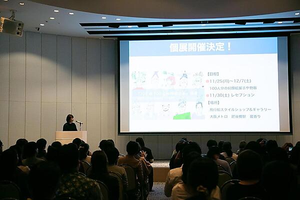 最後に、この「100種100人の似顔絵企画」の個展開催決定を発表。明るい未来に向かっている過程をみんなで共有でき、会場も暖かい空気に包まれました。