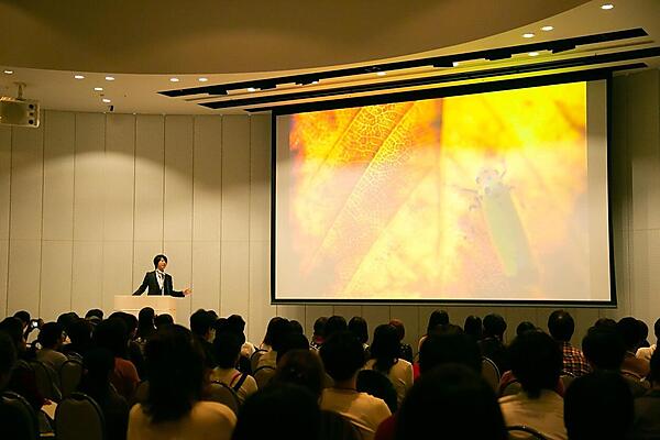 怪盗マントを脱ぎ、司会者から登壇者の顔になった松村佳優さん。職業は写真家・学校講師・Eコマースと多岐に渡りますが、それよりも「何と言っても虫」と冒頭の自己紹介から大好きな昆虫への愛が溢れていました。