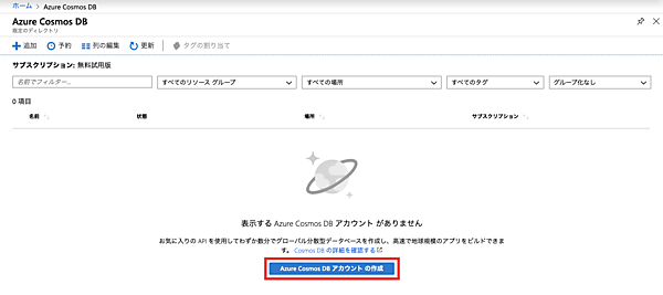 これで、Cosmos DBの準備は整いました。