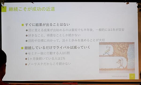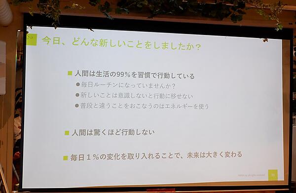 「人は驚くほど動かず、意識しないと変わらない。少しずつでも良いので、普段と違うことをやってほしい」と染谷氏は呼びかけ、1日にわたるセミナーを締めくくった。