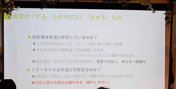 第3部のテーマは「フリーランスで楽しく生き残るマインドセットとハウツー」だ。よく「フリーランスは不安定」と言われるが、会社員でも変わらない。会社員の給料は一局集中で、0になれば安定はなくなる。フリーランスでも会社員でも収入を一局集中にせず、「可能であれば数社から分散して収入を得ると良い。金額は経験を積めば自ずと増えていくので、まずは広くやってみること。昔の成功事例やルールではなく時代の流れを読み取り、思考を変えていかなければ時代に合わなくなる」と染谷氏は示唆した。