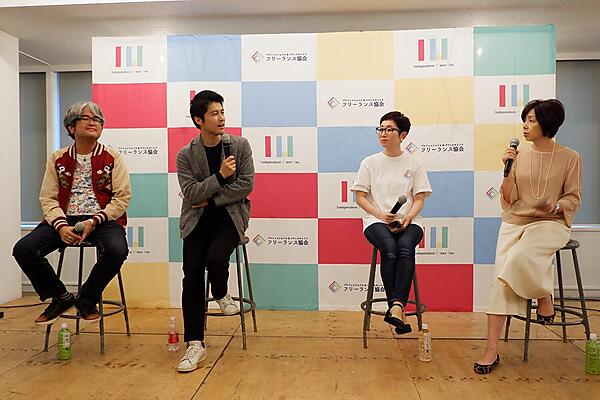 セッションの終了後には、自分の名前を看板に活躍するゲストとして元プロ陸上選手・Deportare Partners代表の為末大氏、黒鳥社コンテンツ・ディレクター(『WIRED』日本版前編集長)の若林恵氏を迎え、フリーランス協会代表理事の平田麻莉氏の3名のスピーカーと、ハフポスト日本版編集長の竹下隆一郎氏をモデレーターにスペシャルトークが開催された。