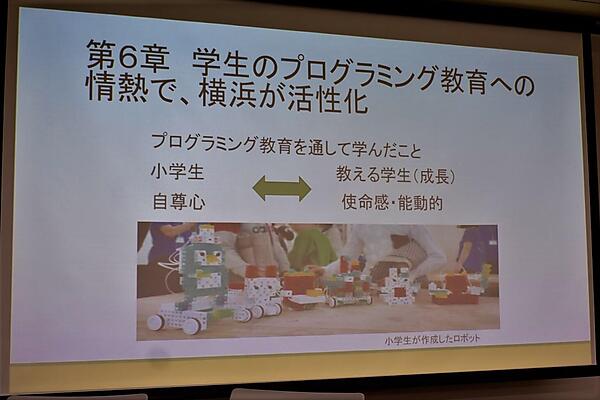 最後に、第6章を担当した学校法人岩崎学園 情報科学専門学校 教員 山田仁子氏が「学生のプログラミング教育と横浜市の活性化」を紹介した。