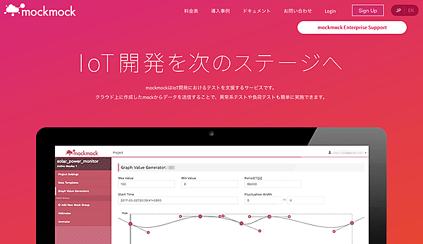 mockmockはIoTテスト用仮想デバイス作成サービスです。通常、IoTシステムにおけるクラウドアプリケーションはデバイスからデータ受信したときに初めて動作します。mockmockを利用してデバイスの代わりに擬似データを送信することで、効率的にテストができます。