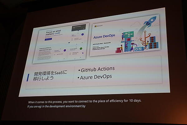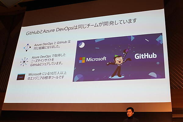 冒頭では「GitHubとAzure DevOpsは同じチームが開発しています」として、GitHubとMicrosoftの融合度合いがアピールされた。