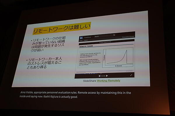 なお増渕氏は、日本型リモートワークは介護や育児の保護などを目的したものだが、海外でのリモートワークのトレンドは、ハイパフォーマンス人材獲得を重視したリモートファーストであるとも語った。