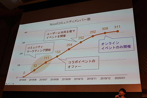 最初にまずNoodlを体験してもらうハンズオンイベントを開催したときには、参加者はわずか2名だったという。しかし、小田氏と出会い、コミュニティマーケティングについてアドバイスを受けたことを実践し、ほかのコミュニティにも参加してデモの実施、オンラインへの技術文書寄稿など積極的に発信していった。こうして、コミュニティのコアメンバーになってくれる人が見つかり、公式イベントが募集開始2時間で満席になるまでに成長し、株式会社ウフルとのコラボも決まり、大手メーカーとも話が進んでいるという。