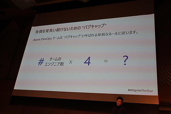 また、チームのエンジニア数×4のバグをチームが抱えたらまずバグを優先して解決する「バグキャップ」のルールや、テストを統合テストから単体テストに移行することでCIからこまめにテストすること、リリースを5つのリング(ステージ)に分けることなど、作業フローに関するさまざまな工夫が語られた。