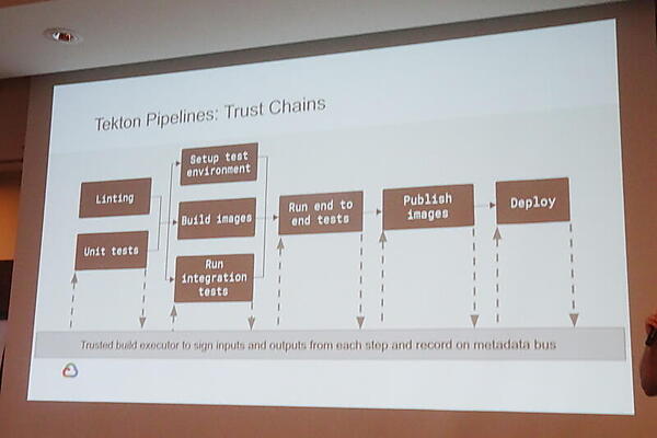 OSSを利用したソフトウェア開発におけるサプライチェーンセキュリティは、静かに問題となっている事項で、GitHubなども取り組んでいる。これをソフトウェアデリバリーの中の問題として位置づけ、CI/CDのベストプラクティスを標準化しようというCDFの話は興味深かった。同様に、機械学習のプロダクション環境へのデプロイのために標準化を進めるKonduitのアプローチも興味深かった。