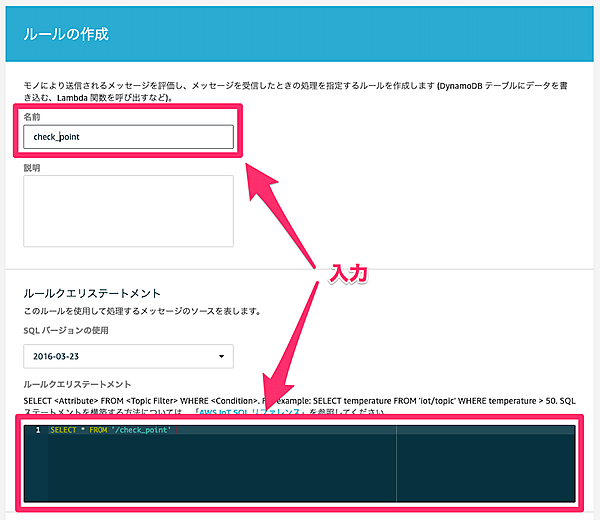 | ルールクエリステートメント | SELECT * FROM '/check_point' |