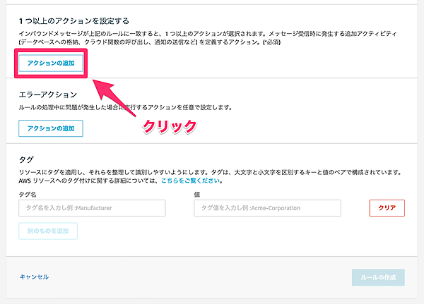 画面をスクロールして「アクションの追加」をクリックしてください。