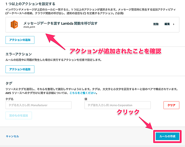 アクションが追加されたことを確認し、「ルールの作成」をクリックしてください。