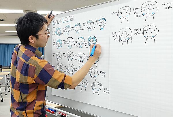 書けた人から自由に見て回り、他の参加者の感じている課題をシェア。さらに自己紹介と自分の課題を発表していきます。