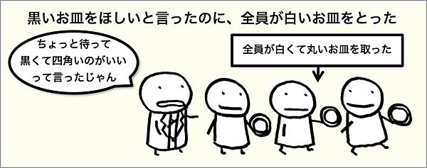 ある⾷器メーカーが、新製品を開発することになりました。エンドユーザー(消費者)に集まってもらい、「どんな新商品が欲しいか、議論してください」と伝えます。