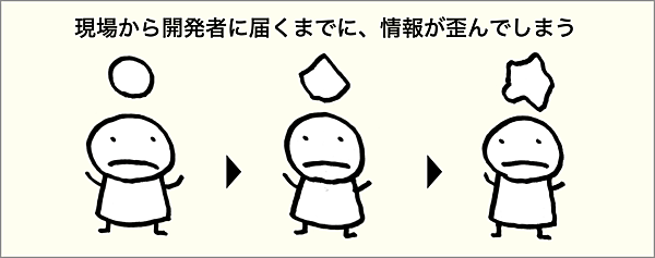 最後の壁は、現場から開発者に届くまでに、仲介者がいることで、情報が歪んでしまうことです。