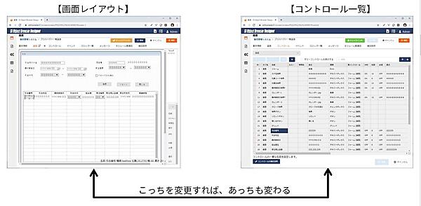 一方、CADは1つの項目(例えば、図3の「引合番号」)が「画面レイアウト」と「コントロール一覧」で同じデータに紐付いているので、どちらかで変更・削除すればもう一方でも変更・削除されます。Excel設計書の場合に画面レイアウトから「引合番号」項目を削除しても、コントロール一覧からは削除されないことを思い浮かべてください。