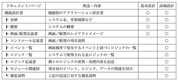一般に基本設計書と詳細設計書は別々のドキュメントではなく、基本設計書に詳細内容を“肉付け”したものが詳細設計書となるので、この2つを作る際にムダは生じません。どこまでを基本設計書の範囲にするかは企業やケースによって異なるので、表1の〇の範囲は柔軟に変わり得ると考えてください。