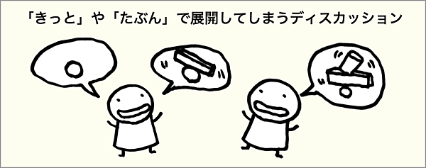 最後の、偉い人の言葉に全員がなびいたのは極端ですが、その前のディスカッションでも「きっと」「たぶん」と推測のうえに推測を重ねていたことにお気づきでしょうか。