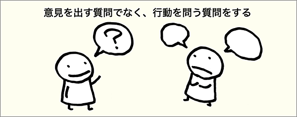 2問⽬のほうが、リアルな回答になったのではないかと思います。実は1問目は「どういうものがあると思うか」という「意見」を出す質問でした。それに対して、2問目は「実際にどうしたか」という「行動」を問うていたのです。