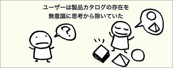 ユーザーは製品カタログの存在を無意識に思考から除いていた