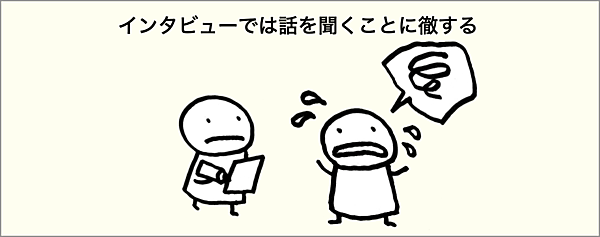 インタビューでは話を聞くことに徹します。