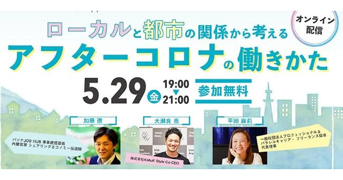 5月28日(金)、世界中がコロナ禍により、テレワークの導入や検討を進める企業が増えるなど、働き方自体が変化してきている中、「ローカルと都市の関係から考えるアフターコロナの働きかた」(主催:一般社団法人プロフェッショナル&パラレルキャリア・フリーランス協会、共催:HafH パソナJOB HUB)が、オンライン配信された。当日は、会社員を中心に245名以上が参加した。