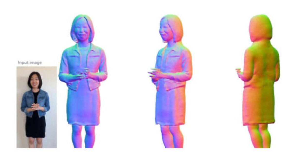 フェイスブックは、3Dスキャンなしに2Dの画像や動画から3Dコンテンツを作成したり、1枚の写真を元に異なるポーズや髪や服を変更したものを合成できたりする画像合成技術を公開しました。