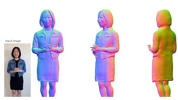 公開された技術は、1枚の画像からさまざまな角度からのイメージを生成し、2D動画から3Dコンテンツへの変換、その場にいない人物を自然に合成というものです。リモートワークやオンラインイベントが進む昨今、同じ場所にいるという自然なイメージを作り出すためにも役立つと言えそうです。