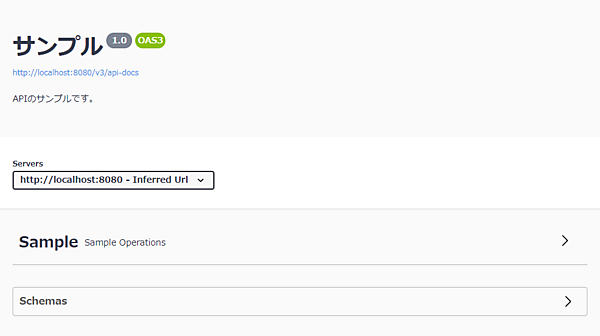 サービス(Sample)のOpenAPIドキュメントは次の通りです。