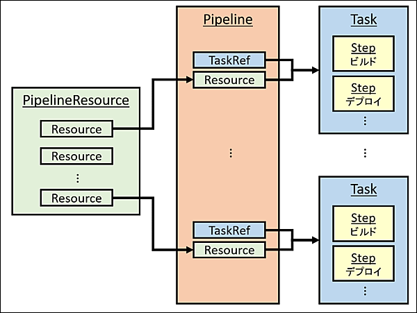 | Pipeline | 1つまたは複数のTaskをまとめて定義 |